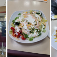 Crisp salad greens topped with an array of garden fresh onions, green peppers and tomatoes . Topped with plump grilled chicken.