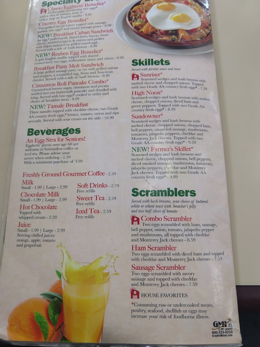At Eggbert's, we believe every meal is an experience. Our guests rave about generous portions, steaming dishes, and the warm atmosphere created by our dedicated staff. Join us for a satisfying meal where smiles are always included!